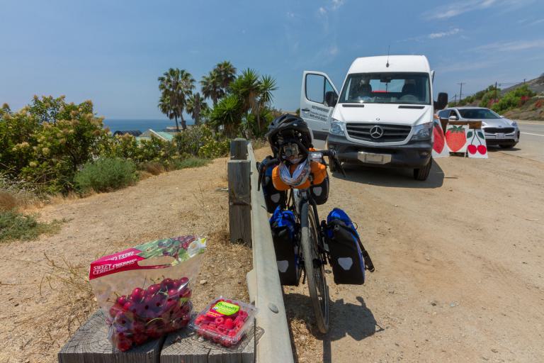 bietet tolle Ausblicke auf's Meer und es weht immer ein leichtes angenehmes Lüftchen. So was habe ich auf der Route 66 vermisst. Kurz nach Malibu ein Früchtestand - da komm ich einfach nicht daran vorbei. Auf dem Leo Carrillo State Park habe ich dann mein Zelt aufgeschlagen. Im Shop des Campgrounds gibt's sogar Cool Beer zu kaufen. Das ist mir schon mal sehr sympathisch. Da überlege ich mir doch gleich zwei Tage zu bleiben.