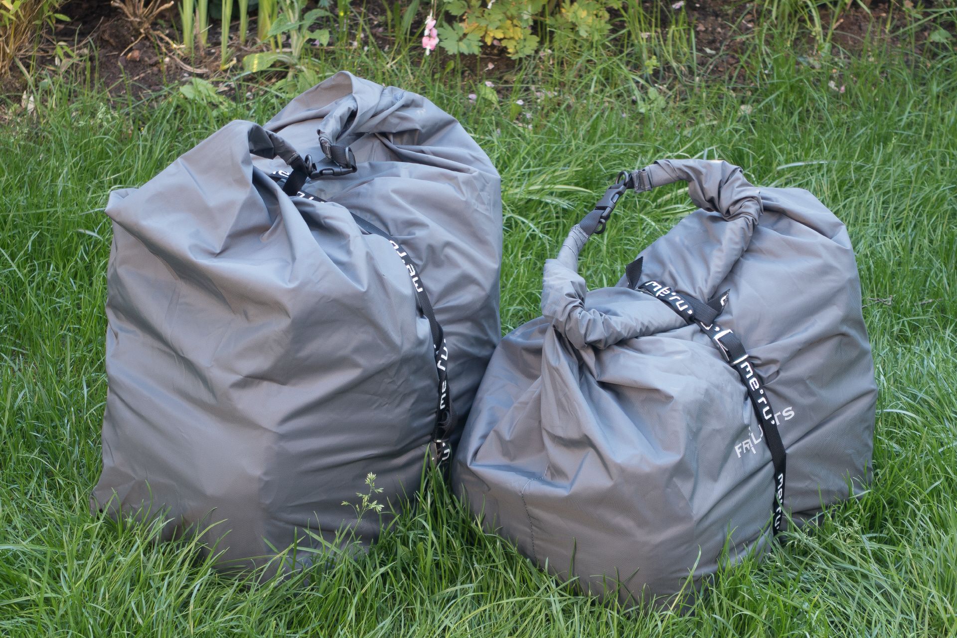 Die 4 Satteltaschen und das Zelt habe ich auf zwei Cargo-Säcke (18,2 kg und 9,1 kg) aufgeteilt. Damit entsprach ich den Vorgaben meiner Airline (Turkish Airline), bei der zwei Gepäckstücke mit je 23 kg mitgenommen werden können. Durch die Cargo-Säcke sind die Satteltaschen auch während des Fluges gut geschützt.