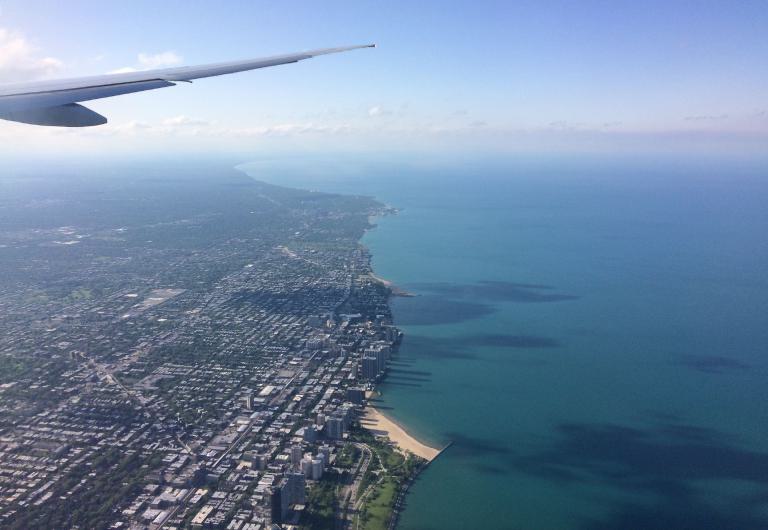 Dann im Transit-Bereich des Atatürk Airports die verschärften neuen Handgepäckregeln für Flieger aus der Türkei in die USA. Eine dreistufige Sicherheitskontrolle und die Abgabe aller elektronischen Geräte, die größer sind als 16 x 9 cm. Und das war bei mir gleich mal mein MacBook, meine Powerbank und der Body meiner Spiegelreflexkamera. Aber es haben alle sehr sorgsam gearbeitet. Nach 11 Stunden Flug in einer Boing 777-900 dann der Anflug nach Chicago über den riesigen Lake Michigan. Jetzt die Prozedur zur Einreise in die USA, wie zu erwarten auch nochmal ne Stunde. Fingerabdrücke, Videopassbilder und die üblichen Fragen.