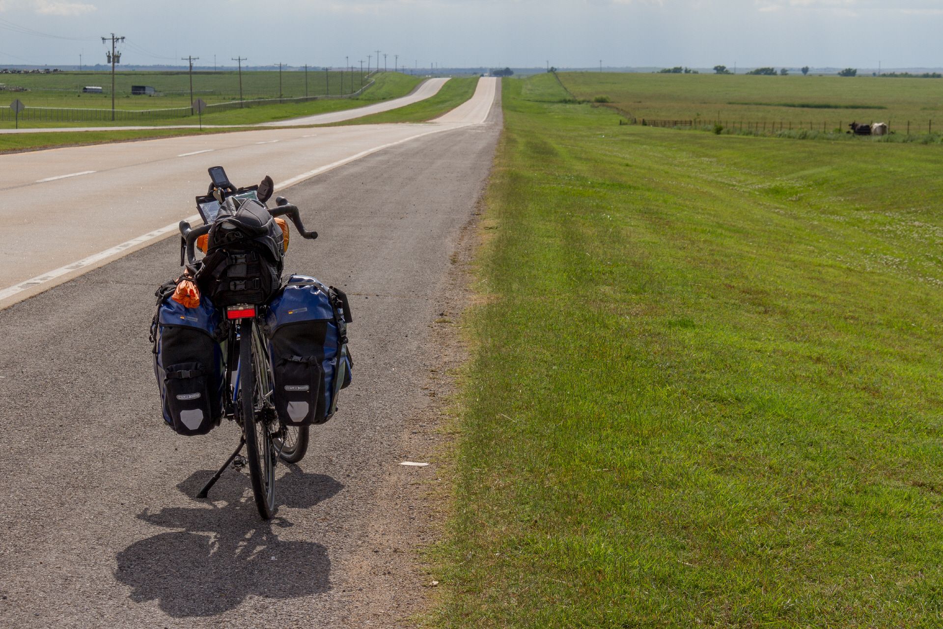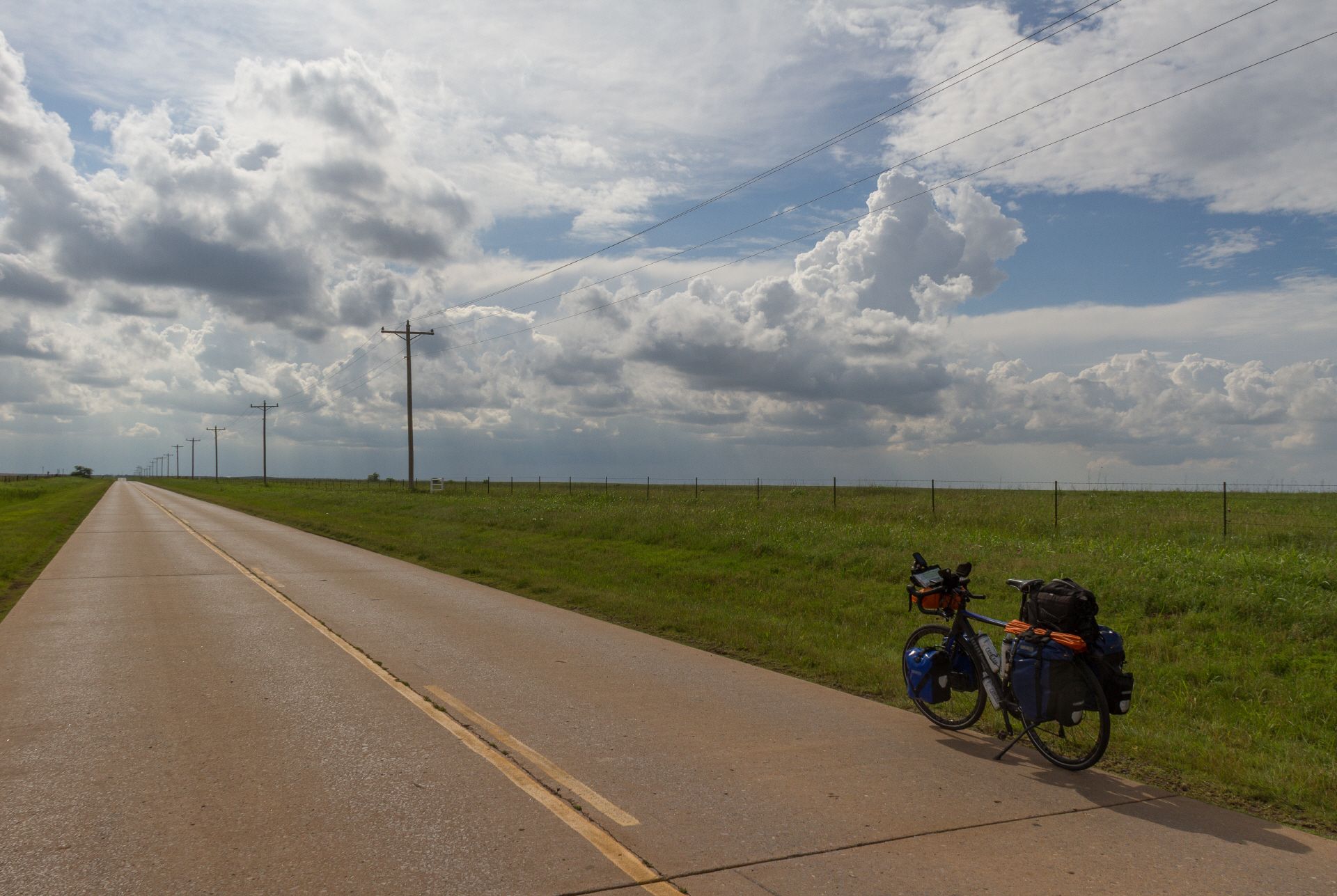 Morgens auf dem Campground des Arcadia Lake State Parks lernte ich eine nette Jung-Familie aus Oklahoma City kennen, die mit ihrem Kind das erste Mal Camping machten. Gemütlich packte ich danach zusammen und radelte Richtung Oklahoma City. Von der Stadt versprach ich mir nicht viel, da die Reiseführer schrieben, diese Stadt ist eigentlich nur per Auto anschaubar. Und so sah ich es dann auch. Riesige Entfernungen, alles nur für Autos gemacht. Eine "Innenstadt", wie wir es kennen gibt es nicht. Deshalb radelte ich zügig daran vorbei mit dem Ziel in der nächsten Kleinstadt El Reno den Campingplatz aufzusuchen. Nur hatte ich mich mit den Entfernungen mal wieder verschätzt. Die Stadtdurchquerung hat sich auch wieder allein 30 km hingezogen. Und dann in El Reno: Der im Führer ausgezeichnete KOA Campingplatz mit der Adresse von El Reno ist über 25 km außerhalb von El Reno. So ein Mist.