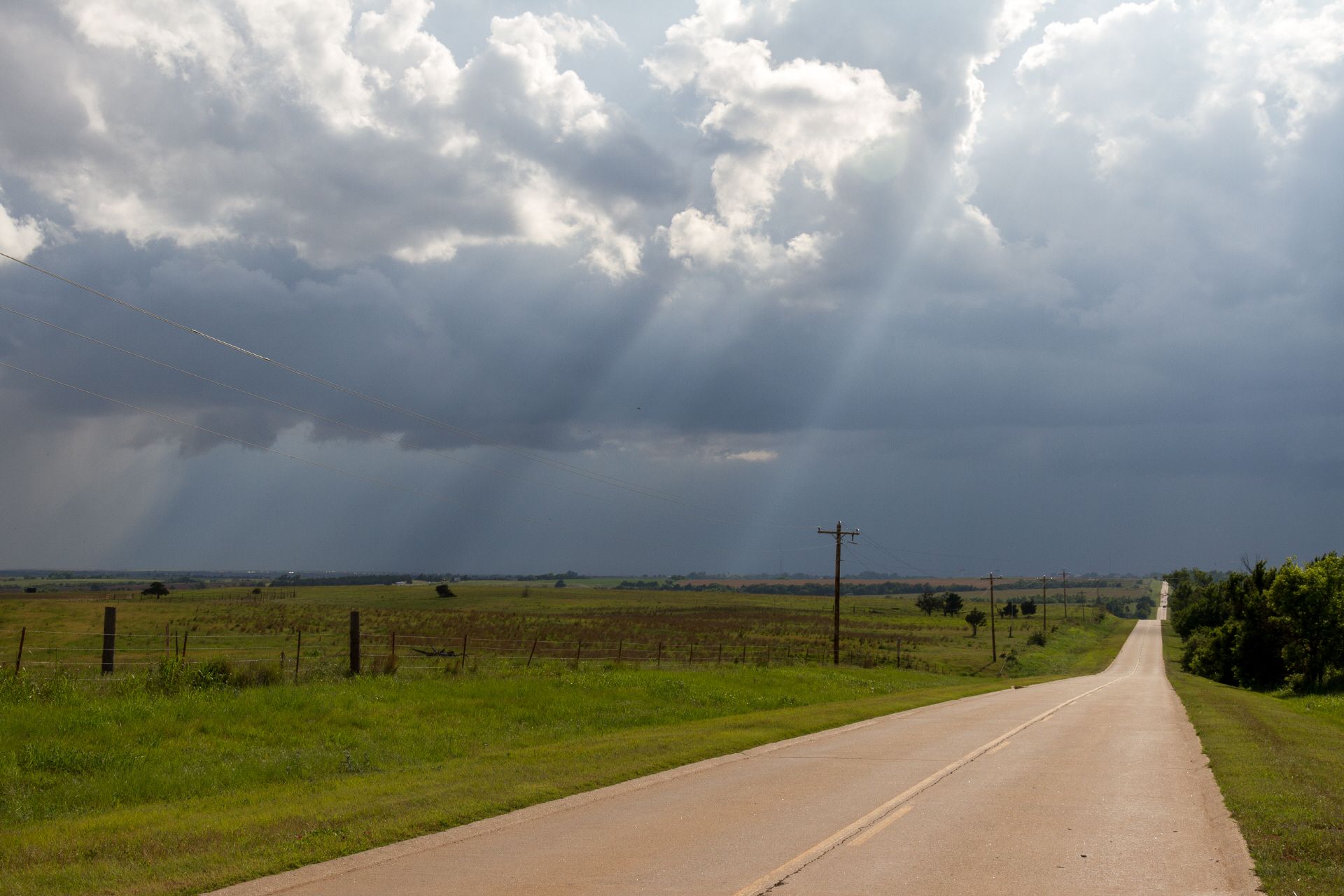 Und das über sehr öde Landschaft. Für Oklahoma typisch. Das kostete mentale Power. Dann braute sich auch noch relativ spontan ein Unwetter zusammen - also hieß es sputen. Endlich am KOA angekommen, entschied ich mich (warum auch immer) für einen Zeltplatz und nicht für ein Cabin. Die gab's nämlich auch - hätte eben das Doppelte gekostet. War das doch das Stück Schwabe in mir, dass mich da geritten hat?