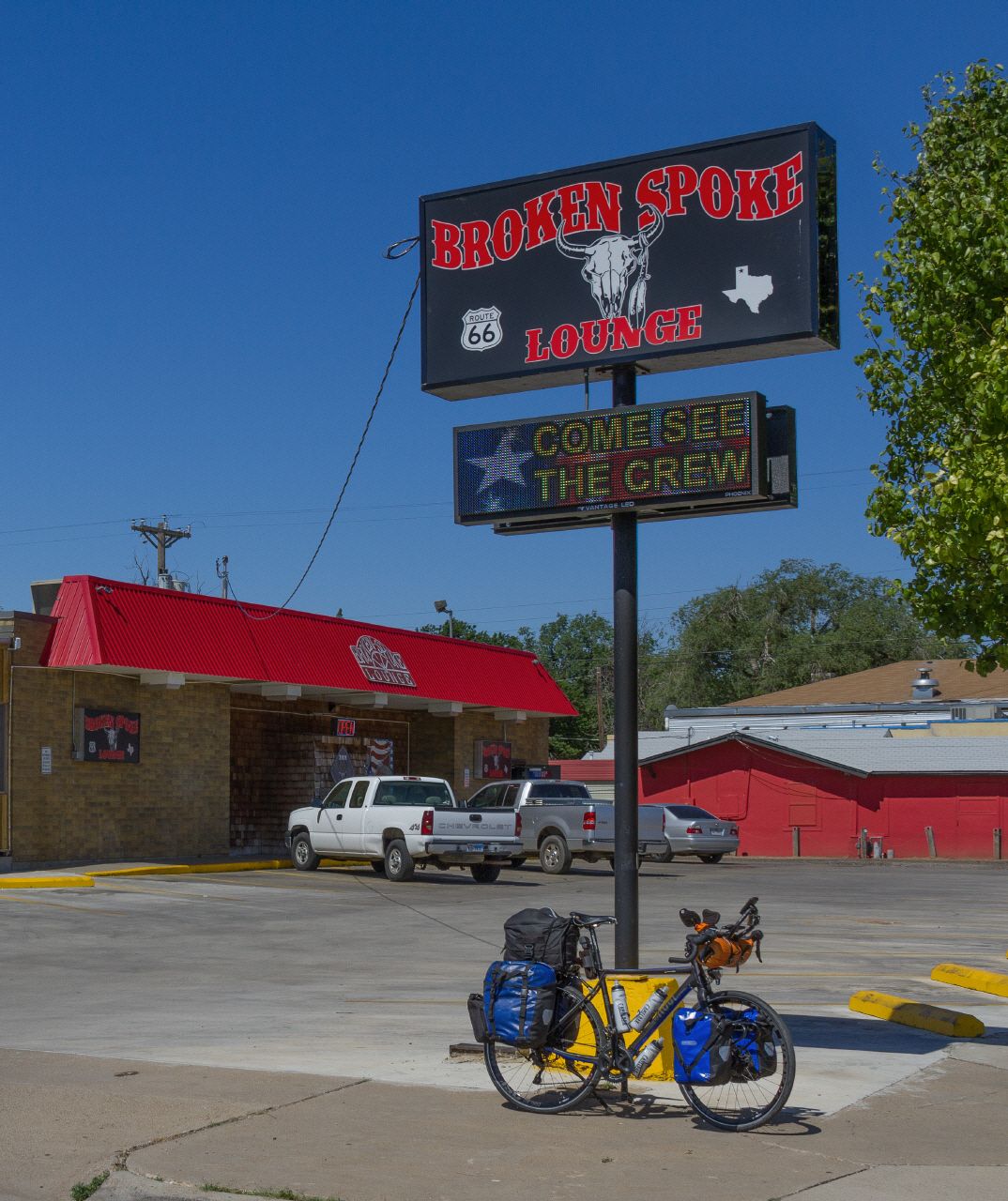 Heute Morgen habe ich mein gesamtes Gepäck umgepackt. Schwere Sachen in die kleinen vorderen Packtaschen. Bestimmt 5-8 kg konnte ich so von meinem Hinterrad aufs Vorderrad verlagern. Das müsste meine geplagten Hinterrad-Speichen entlasten. Dann bin ich aufgebrochen, um mir Amarillo anzuschauen. Dank GPS musste ich nicht "Is this the way to Amarillo? singen :-) Gleichzeitig suchte ich aber auch einen Bike-Shop auf. Dort ließ ich das Hinterrad checken und zentrieren. Jetzt läuft's perfekt. Wahrscheinlich war der zweite Speichen-Bruch eine Folge der unterwegs nicht ganz so genau vorgenommenen Zentrierung meinerseits.