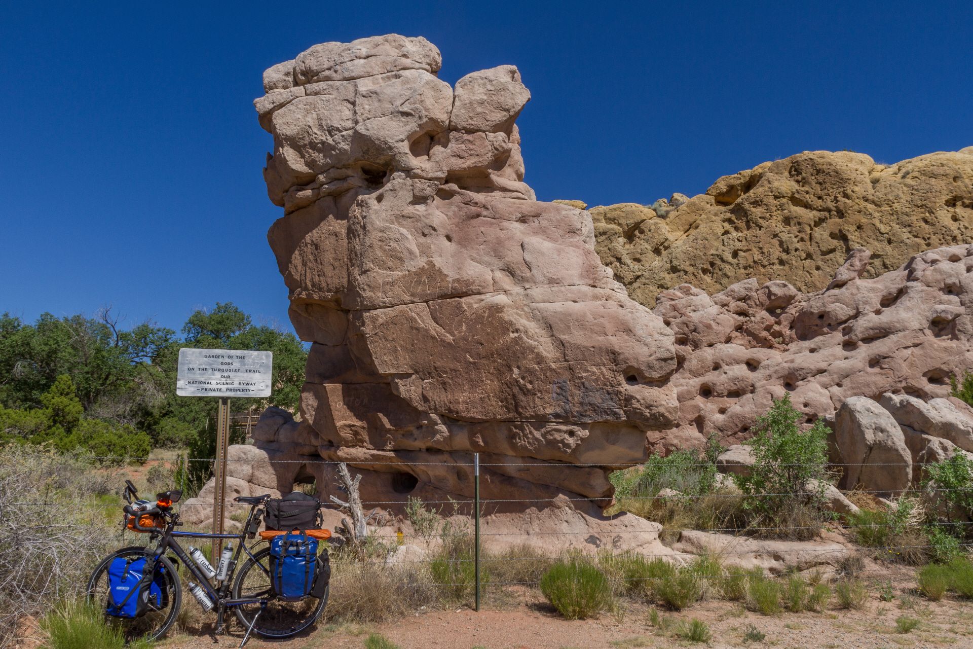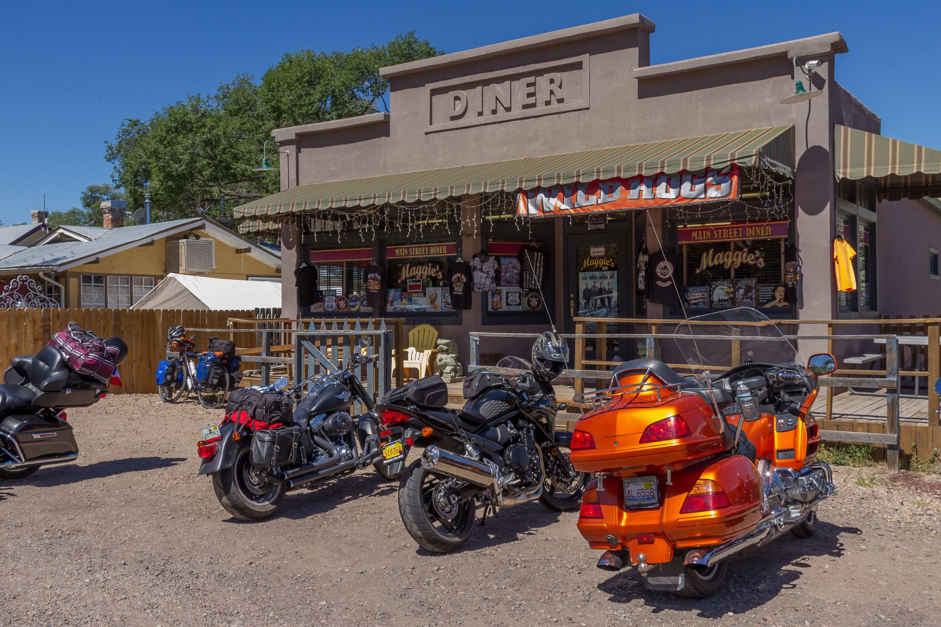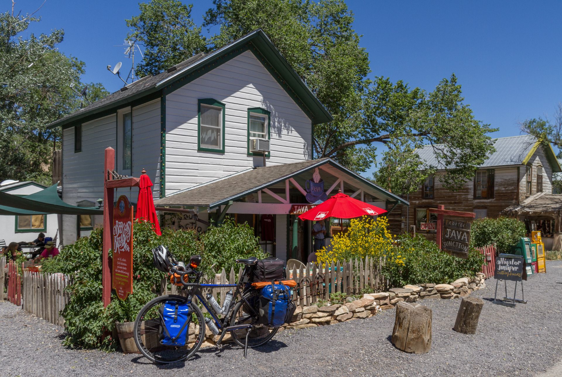 Und weiter geht's. Nach dem Pausentag gestern eröffnet sich der heutige Tag erstmal mit einem sehr angenehmen Dahinradeln durch tolle Landschaft. Das südlich von Santa Fe liegende Madrid ist ein nettes Künstlerdorf mit viel Krimskrams. Da gönne ich mir erst mal ein Smoothies im Java Junction Coffee. Nach Madrid dann wieder ein kräftiger Anstieg mit leichtem Gegenwind. Fast oben angekommen, macht's wieder 'Pling' und ich konnte meine Pannenstatistik um eine weitere Speiche am Hinterrad ergänzen. Während dem Speichen-Tausch hält eine Autofahrerin an und fragt, ob ich Hilfe bräuchte. Dabei kommen wir in ein nettes Gespräch. Eine Panne kann auch was Positives haben.