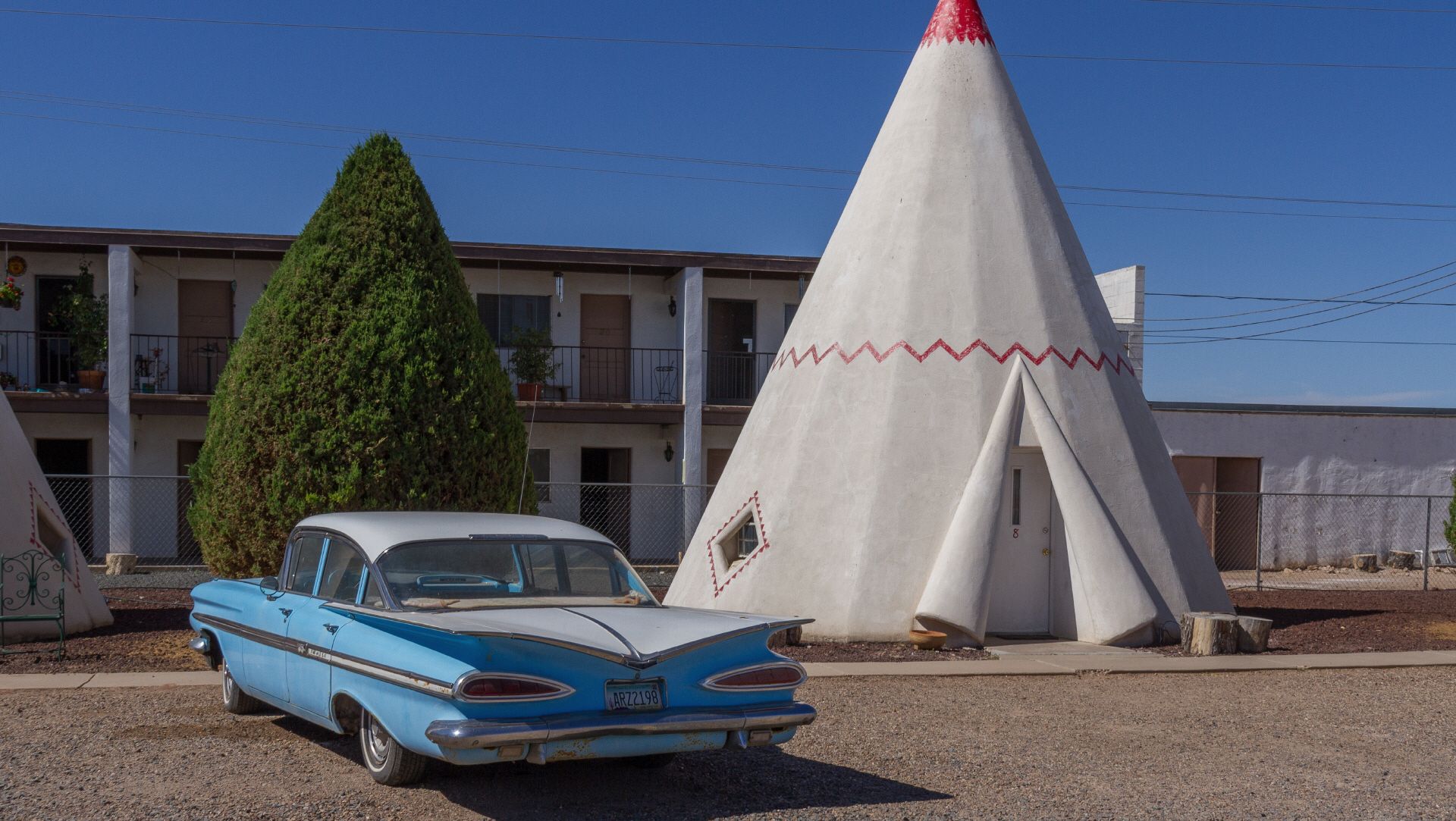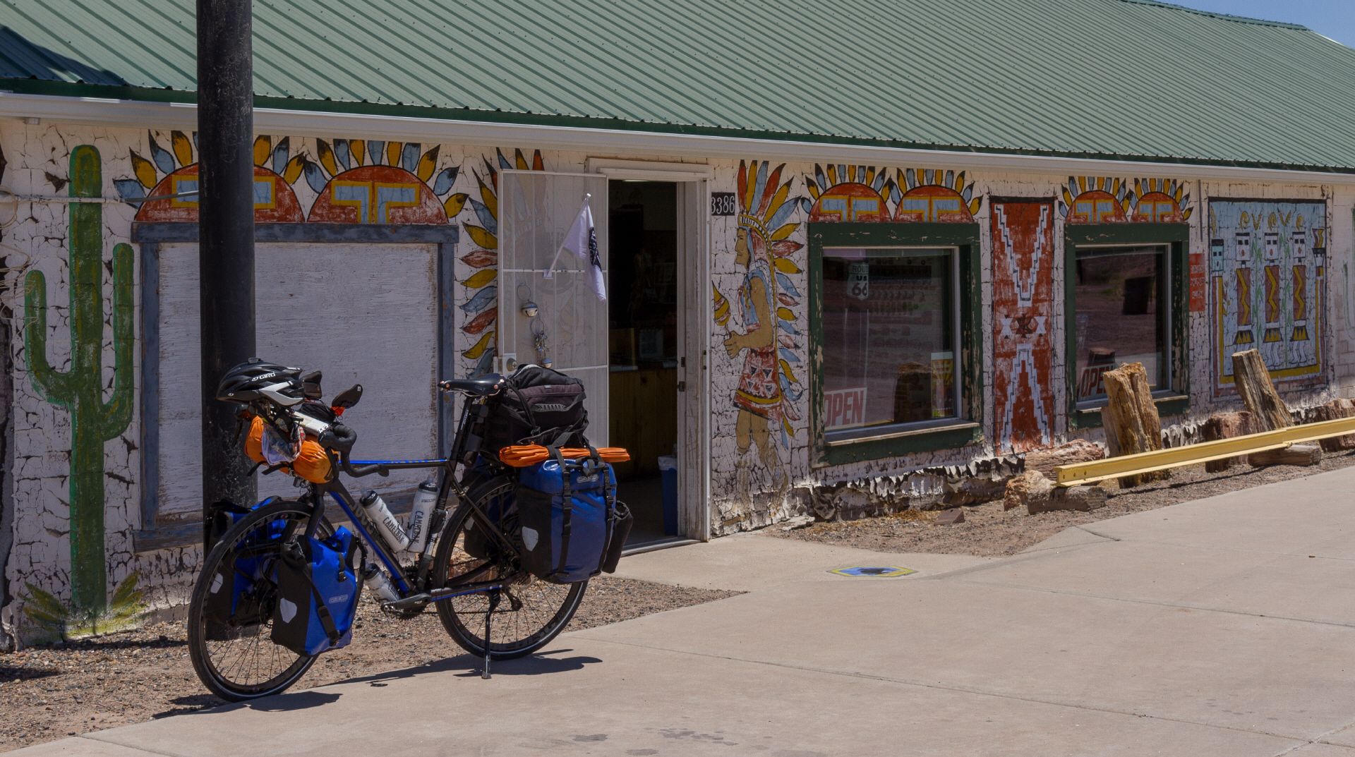 Da Arizona nicht die Sommerzeit hat, geht hier die Sonne schon kurz nach 5 auf. Und das merkt man im Zelt sofort und die Hitze stellt sich schon beim Packen ein. Auf dem KOA haben sie zwar Pancake Breakfast angeboten, ich habe mir aber lieber mein Müsli mit Fruchtsaft-Pulver (Milch geht nicht bei der Hitze) reingezogen. Das hält länger an. Ein Kaffee hab ich dann doch noch im Breakfast Area getrunken und dann mich lange mit einer netten, jungen Familie aus Florida unterhalten. Habe heute ja nur eine kurze Strecke eingeplant und wahrlich genug Zeit. Deshalb kurzer Besuch am legendären Wigwam-Motel und dann in den Safeway, dem größten Supermarkt von Holbrook, um mich noch mit den Dingen einzudecken, die ich nicht auf dem Land bekomme z. B. Olivenöl.