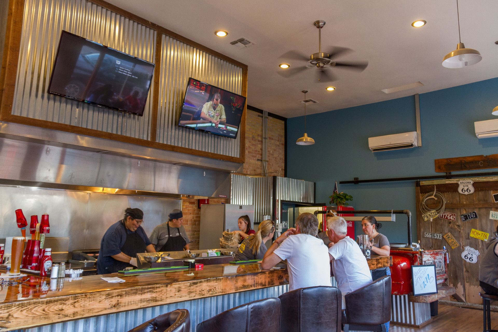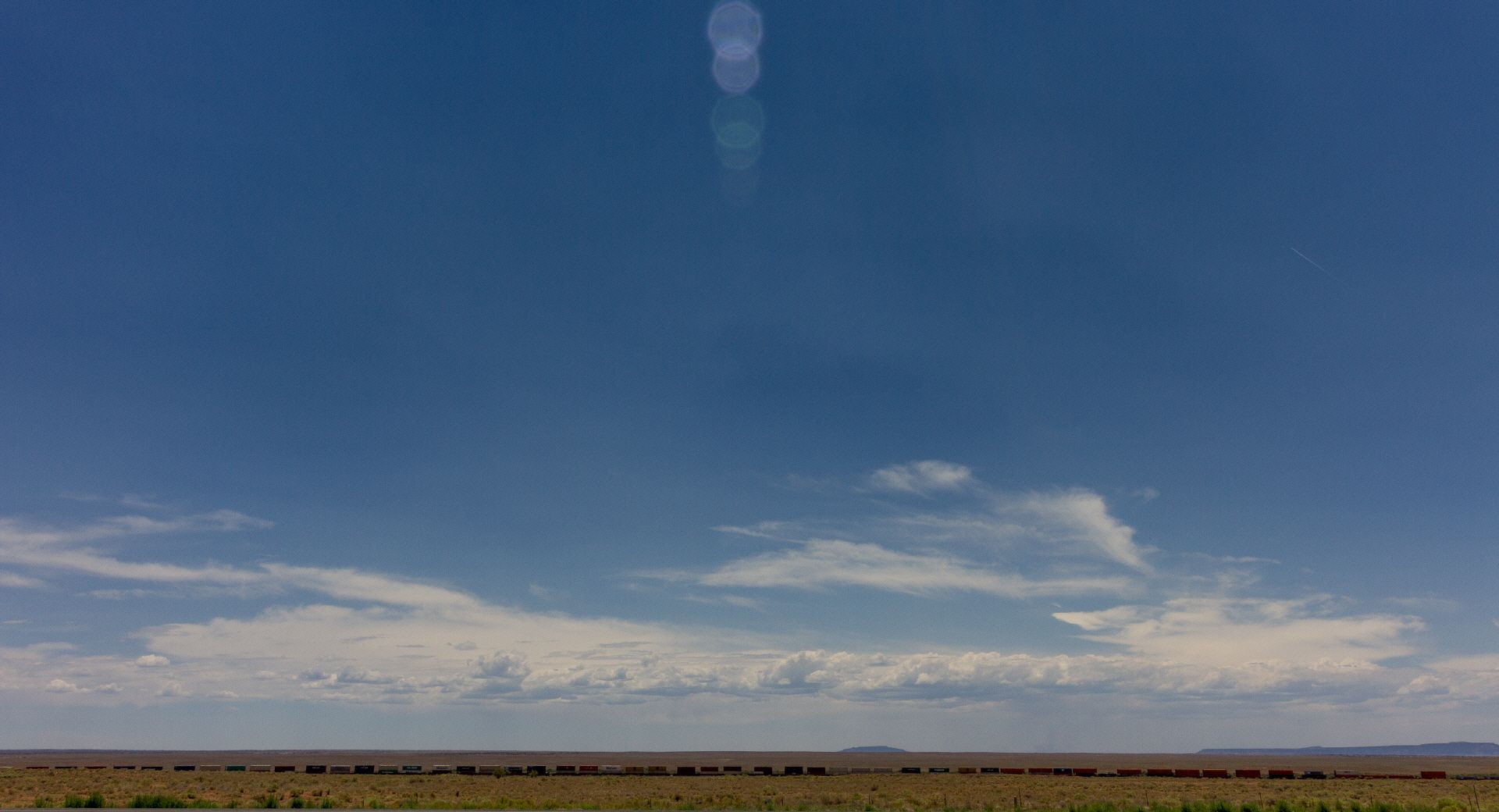 Auf der Strecke kurz nach Jack Rabbit habe ich mich auf ein Wettrennen mit einem Güterzug eingelassen. War lustig und die Lokführer haben mich angefeuert. Im Zielort Winslow ca. 1 km vor meinem Motel dann noch ein Platten am Hinterrad. Wieder dieser verflixte Draht. Winslow selbst ist sehr übersichtlich und eigentlich vorwiegend bekannt durch das 'Standing on a corner' Wandgemälde welches auf den ersten Hit-Song der Eagles basiert. Dort gab's für mich auch eine nette Bar (RelicRoad Brewing Company) mit guten Burger und Bier.