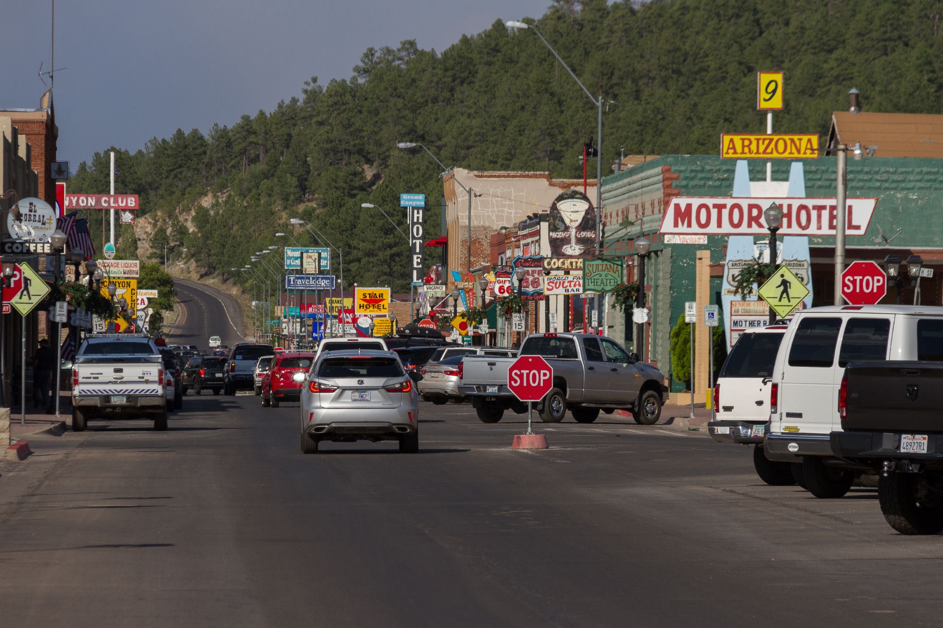 Heute soll's nur bis Williams gehen, dem Knotenpunkt, von dem ich dann den Abstecher zum Grand Canyon vorhabe. Keine große Etappe heute - deshalb erstmal gemütlich in Flagstaff einen guten italienischen Kaffee und ein Bagel genießen. Flagstaff ist schon gechillt. Eine Mischung aus Key West, Banf und Jasper (wenn ihr die Orte kennt). Am Grand Canyon habe ich vor ein paar Tage zu verbringen. Zum Einen wegen der Fotomotive und der Möglichkeit als Hiker/Biker zu campen und zum Anderen warte ich darauf, dass meine spätere Wüstenetappe mit über 170 km passierbar wird. Gestern wurden dort (in Needles) 50 Grad im Schatten gemessen. Laut Wetterbericht soll die Temperatur in paar Tagen leicht nach unten gehen. Die heutige Strecke war zwar kurz, aber ständige starke Gegenwinde und extreme Böen machten diese Etappe doch nicht ganz so einfach.
