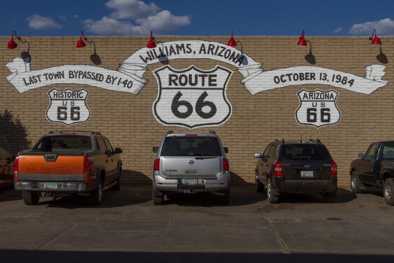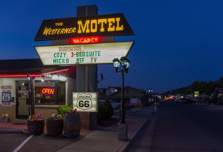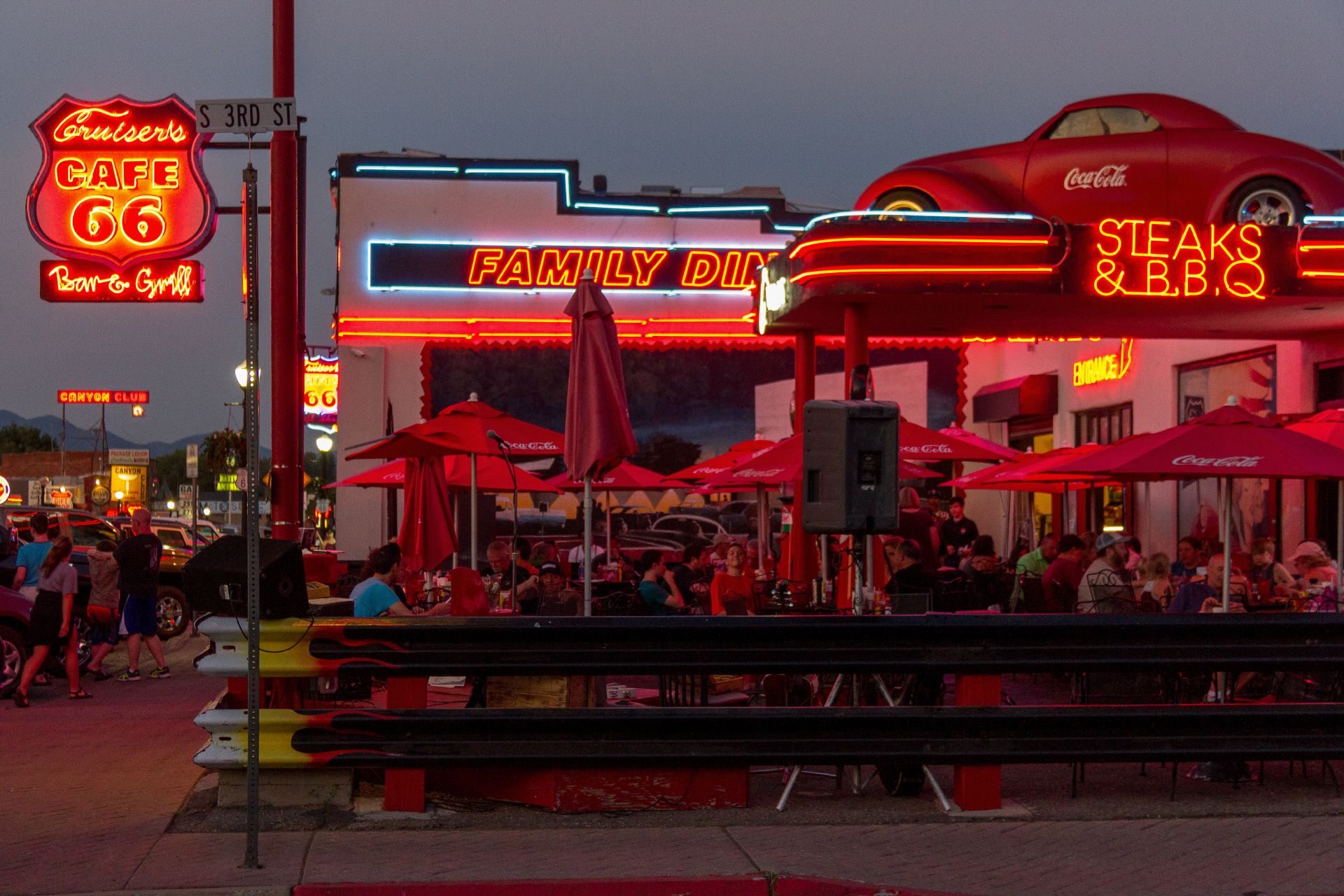In Williams angekommen ging's erstmal in den Route 66 Diner auf einen Ankommens-Milchshake. Beim Reingehen fragte mich eine ältere Dame namens Susan, die ebenfalls den Diner aufsuchte, ob wir einen Tisch 'sharen' sollen, da sonst keine weiteren Gäste da sind. Nach einer netten Unterhaltung über europäische Abstammungen (ihre Vorfahren kamen aus Dänemark) und unseren Familien lud Susan mich zum Shake ein. Nett. Williams selbst ist sehr touristisch, hat viele Motels und ganz gute Bars, z.B. das Historic Barrel Bottle, in dem zu lokalen Bieren vom Tap die Black Keys und die Arctic Monkeys, einer meiner Lieblingsgruppen, gespielt wurden. Also Williams lohnt sich für einen Stopp. Mein heutiges Motel war wie meist üblich wieder in fester indischer Hand.