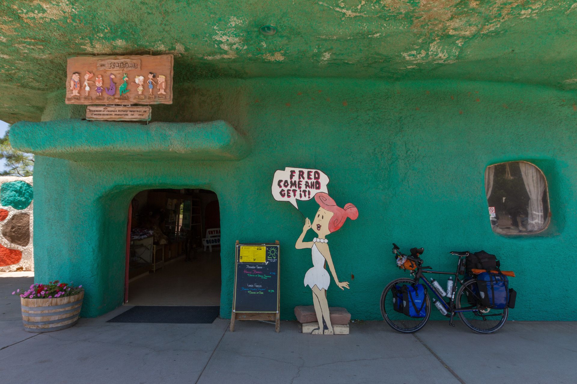 Auf der Strecke nach Williams bin ich beim Flintstones Park mit angegliedertem Campingplatz vorbeigekommen. Sonst war die Strecke eher anstrengend. Gegenwind mit teils starken Böen, viel Verkehr und mal wieder eine Speiche. Das schlaucht doch ziemlich. Aber Glück im Unglück: Der Speichen-Bruch passierte 100 m vor einer einsamen Tankstelle, da war das Austauschen der Speiche mit eiskaltem Eistee ertragbarer. Und nach so einer Strecke musste ich in Williams wieder im historische Barrels & Bottle landen zum Bier vom Tap - komisch. Und wieder Arctic Monkeys - I Love it.