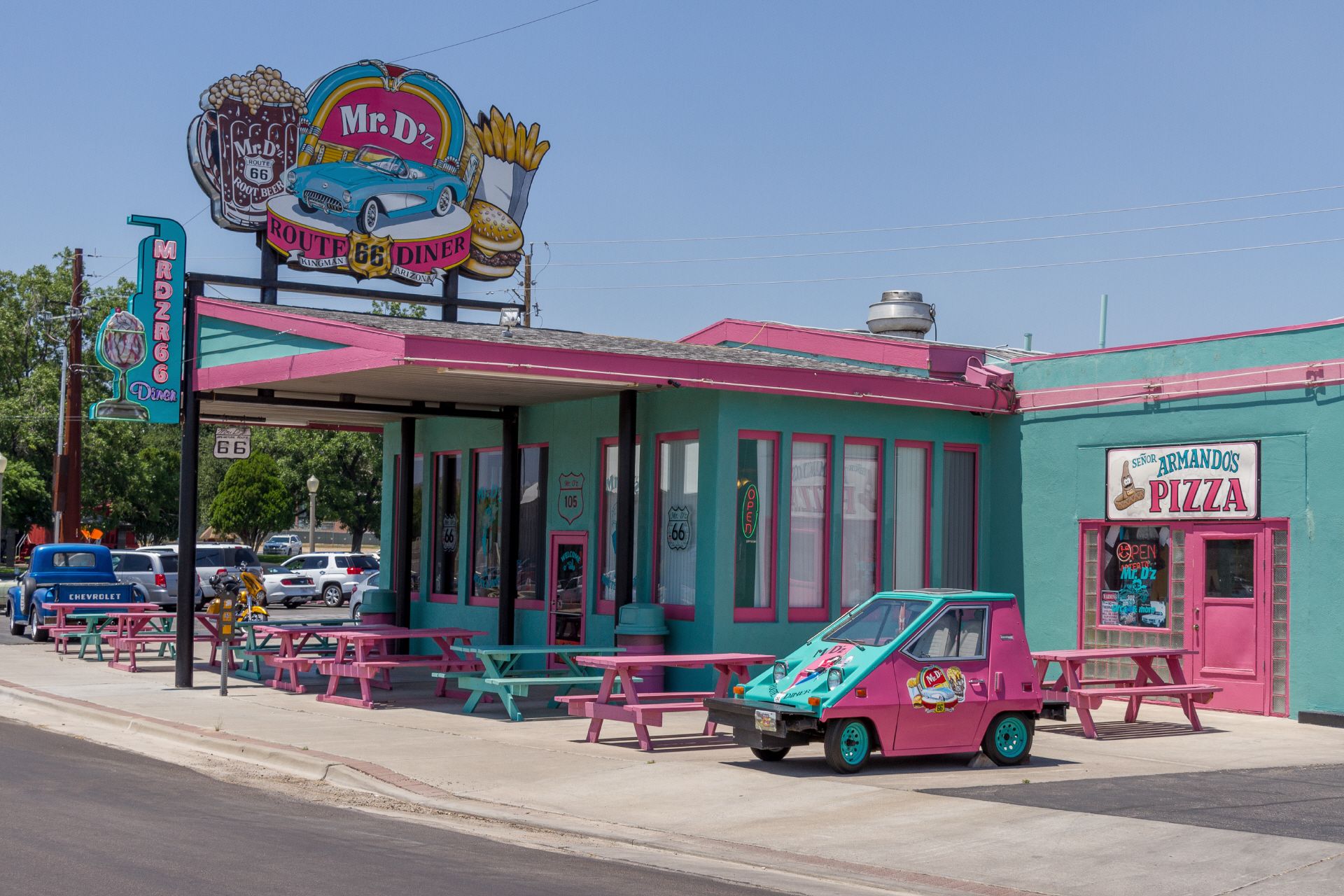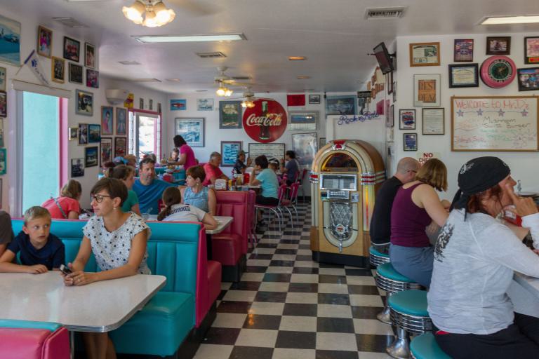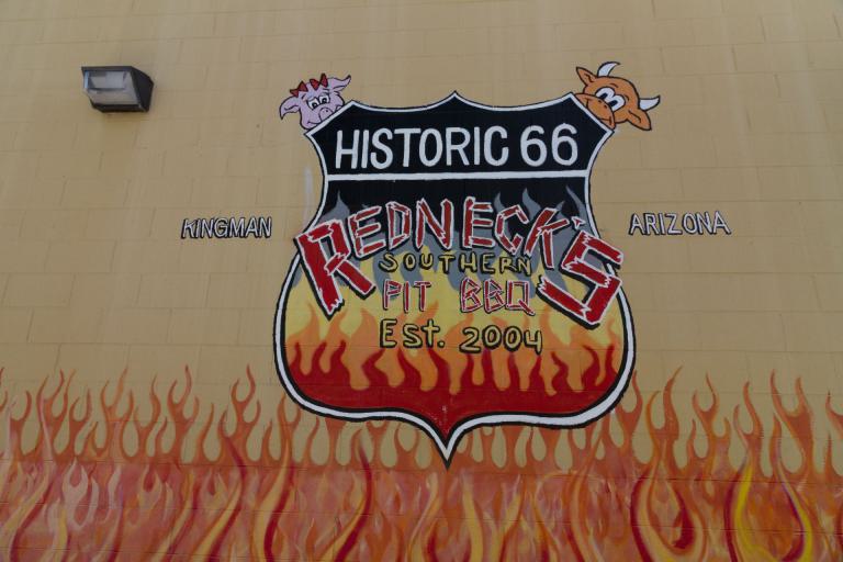 Den heutigen Ruhetag habe ich am Pool des Motel 6 begonnen. Dann habe ich zum späten Frühstück das legendäre "Mr. D'z Diner" aufgesucht. Das traditionelle Breakfast dort ist ganz gut. Der Diner selbst ist jedoch etwas überzeichnet und war ziemlich voll, was etwas auf Kosten des sonst sehr freundlichen Service in den Dinern ging. Ein kurzer Rundgang im sogenannten 'Historical District' von Kingman zeigte vorwiegend Antiquitäten-Shops, wenige Bars und ein Museum zur Route 66 und dem Mohave County.