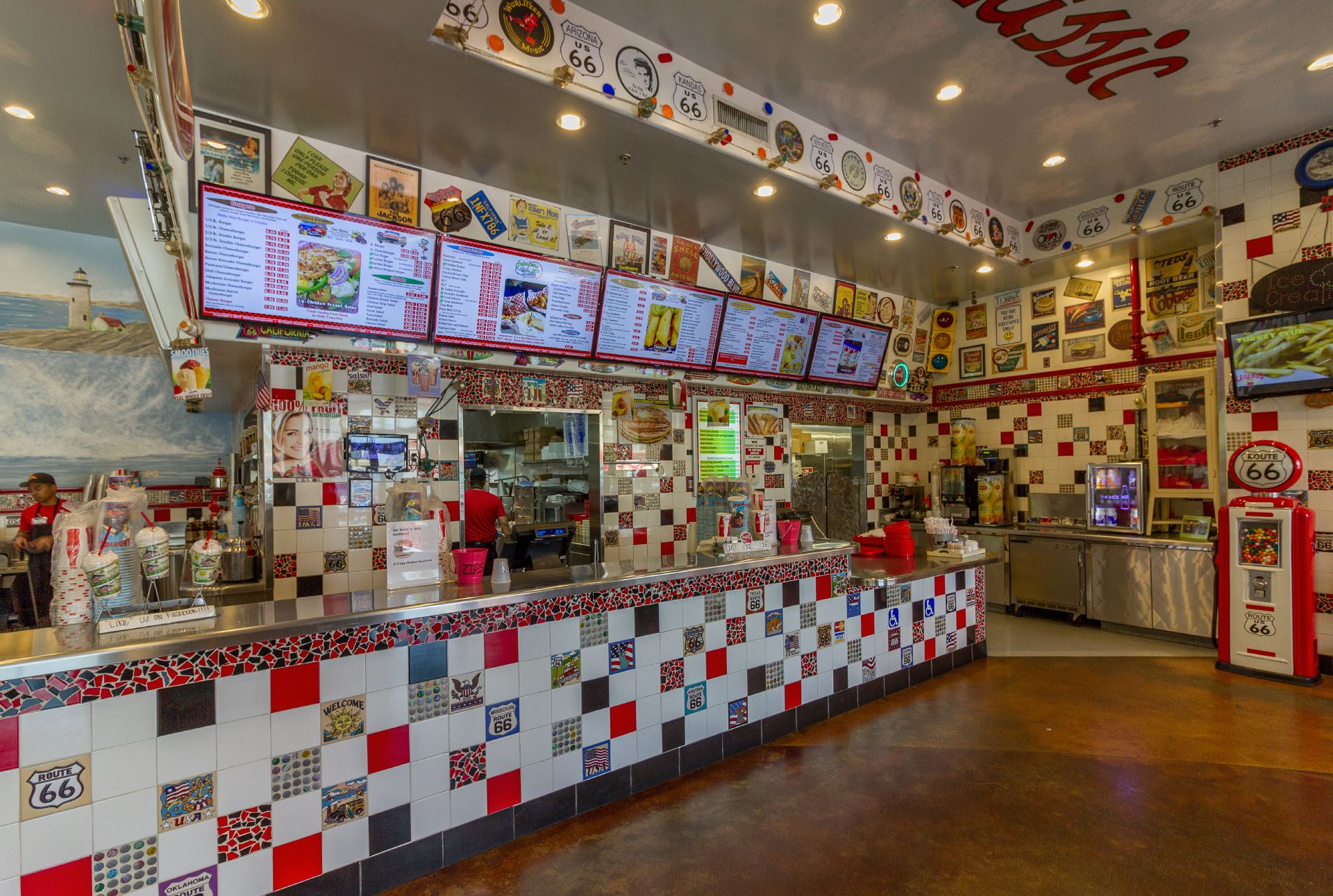 Alles aber so zusammengebaut, dass es wie eine nicht endende Stadt wirkt. In Glendora gab's im Route 66 Legends Classic Diner den bisher besten Milkshake. Ich kann das beurteilen, denn ich hab einige auf der Route 66 probiert. In Pasadena habe ich dann im Howard Johnson eingecheckt. War etwas teurer, aber das Umfeld des Billig Motel 6 und deren Qualität gestern hat mich genervt. Im Howard Johnson gab man mir wegen meines Fahrrades ohne Aufpreis eine Suite. Alle Achtung! 2 Zimmer, 2 Air Conditions, 2 Kühlschränke, 2 TV und viel Platz. Hat sich gelohnt. Nach einer Pool-Runde habe ich mir im Zimmer gemütlich meine Spaghetti Alio Olio gekocht.