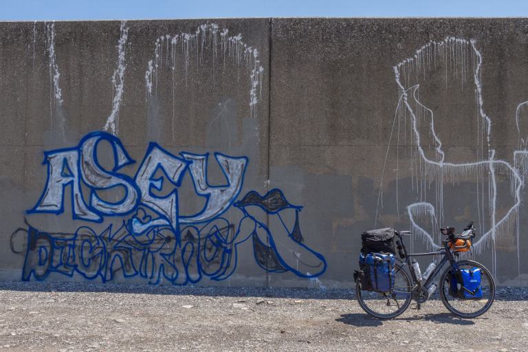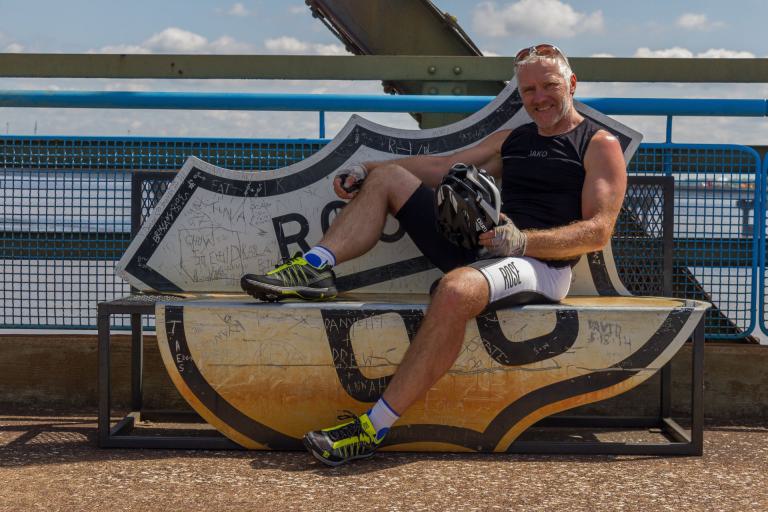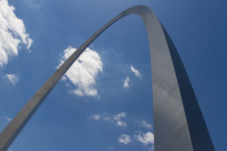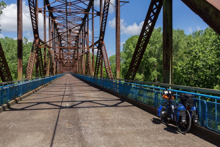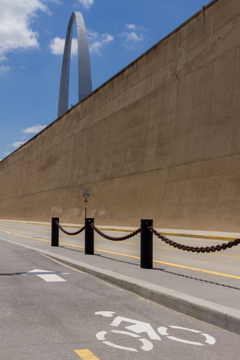 St. Louis ist nicht mehr weit. Und damit auch der Übergang von Illinois zu Missouri über den Mississippi. Das heißt, heute ist eher Sightseeing als Radeln angesagt. Zuerst gings über die 'Chain of Rocks' eine für den Autoverkehr gesperrte alte Stahlbrücke über den Mississippi. Interessant ist dabei, dass die Brücke auf halber Strecke eine Biegung einlegt. Toll - ohne Autoverkehr. Welch Ruhe.