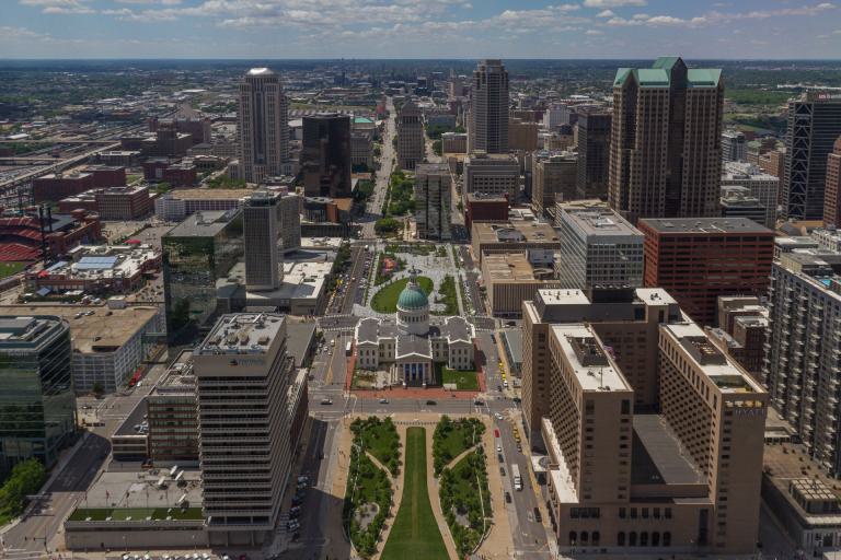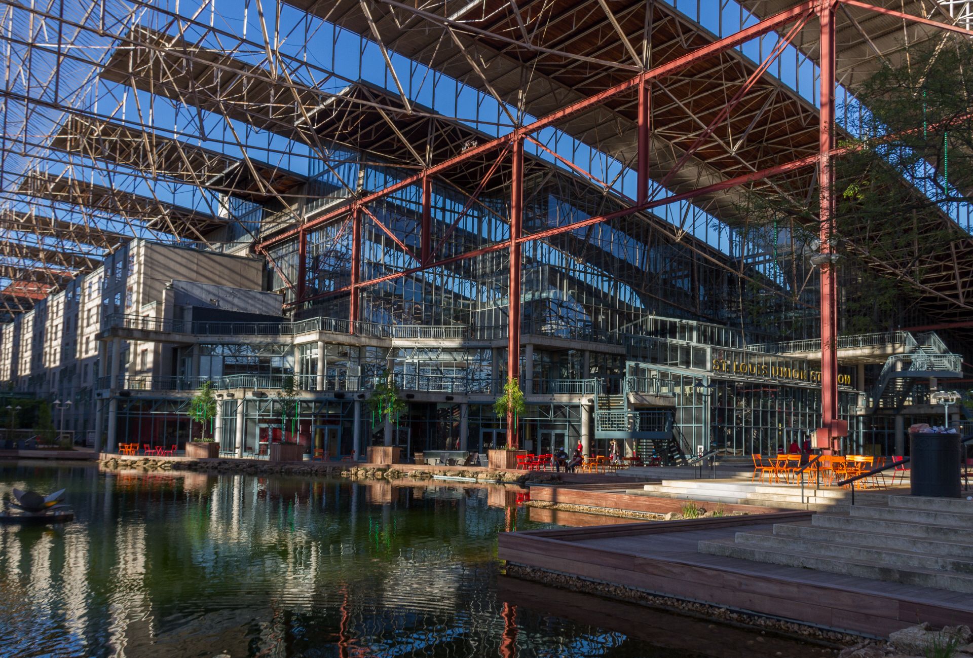 Dann ging's weiter auf dem Riverfront Trail nach St. Louis. Dort steht man erstmal ziemlich baff vor dem Arch, dem "Gateway to the West". Mit extrem engen Lift-Kapseln ging's dann im Inneren des Arch bis auf die Spitze. Dann suchte ich noch den Union Station Bahnhof auf, da er anscheinend ein sehr schöner historischer Bahnhof sein soll. Leider wird er gerade komplett renoviert, so dass ich nur den überdachten Vorplatz anschauen konnte. Dort im Hardrock Cafe traf ich auf Ben, ein junger Lehrer aus Oklahoma, mit dem ich mich nett unterhalten konnte.