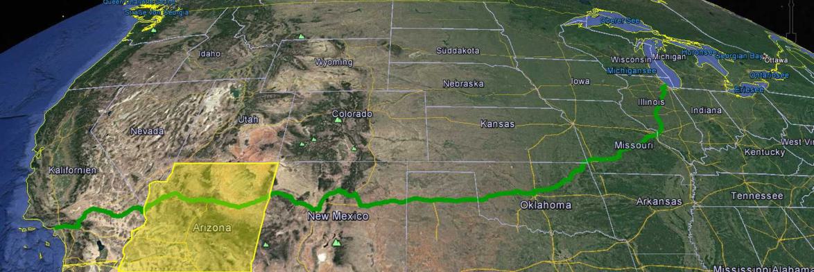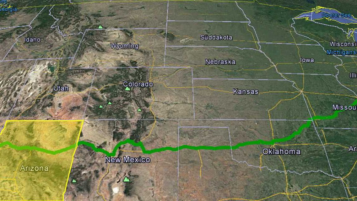 Dort trifft Arizona im äußersten Nordosten an Colorado und teilt sich die Ostgrenze vollständig mit New Mexico.