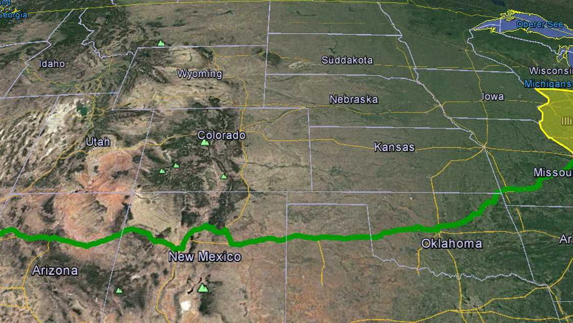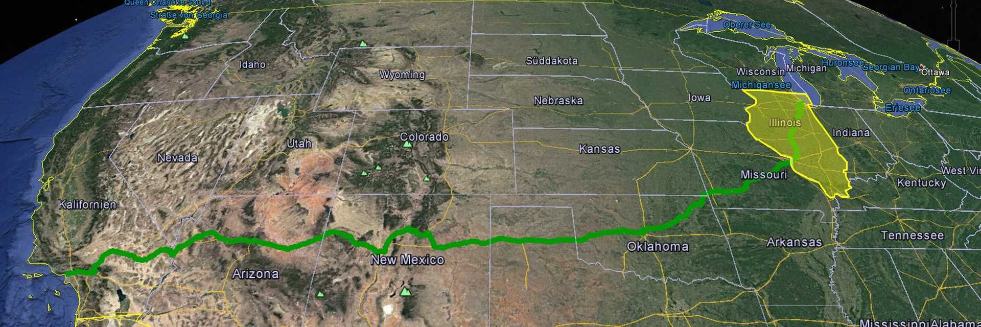 Illinois - der erste Bundesstaat der Route 66 liegt im mittleren Westen und grenzt im Nordosten an den Michigansee. Der Name kommt aus der Algonkin-Sprache und dem Französischen und bezeichnet den Indianerstamm der Illiniwek oder Illini, der damals das Land bewohnte und dessen Name Das Volk bedeutet. Als Ende des 17. Jahrhunderts die ersten französischen Siedler kamen,