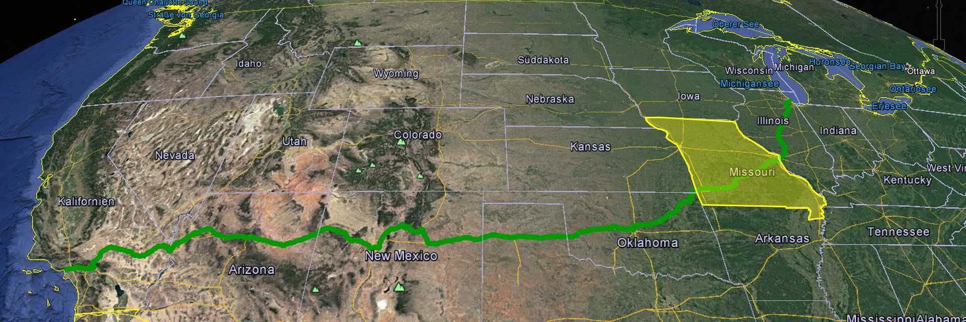 Die Gesamtfläche Missouris beträgt 180.533 km 2;, womit es auf Rang 21 aller US-Bundesstaaten liegt.