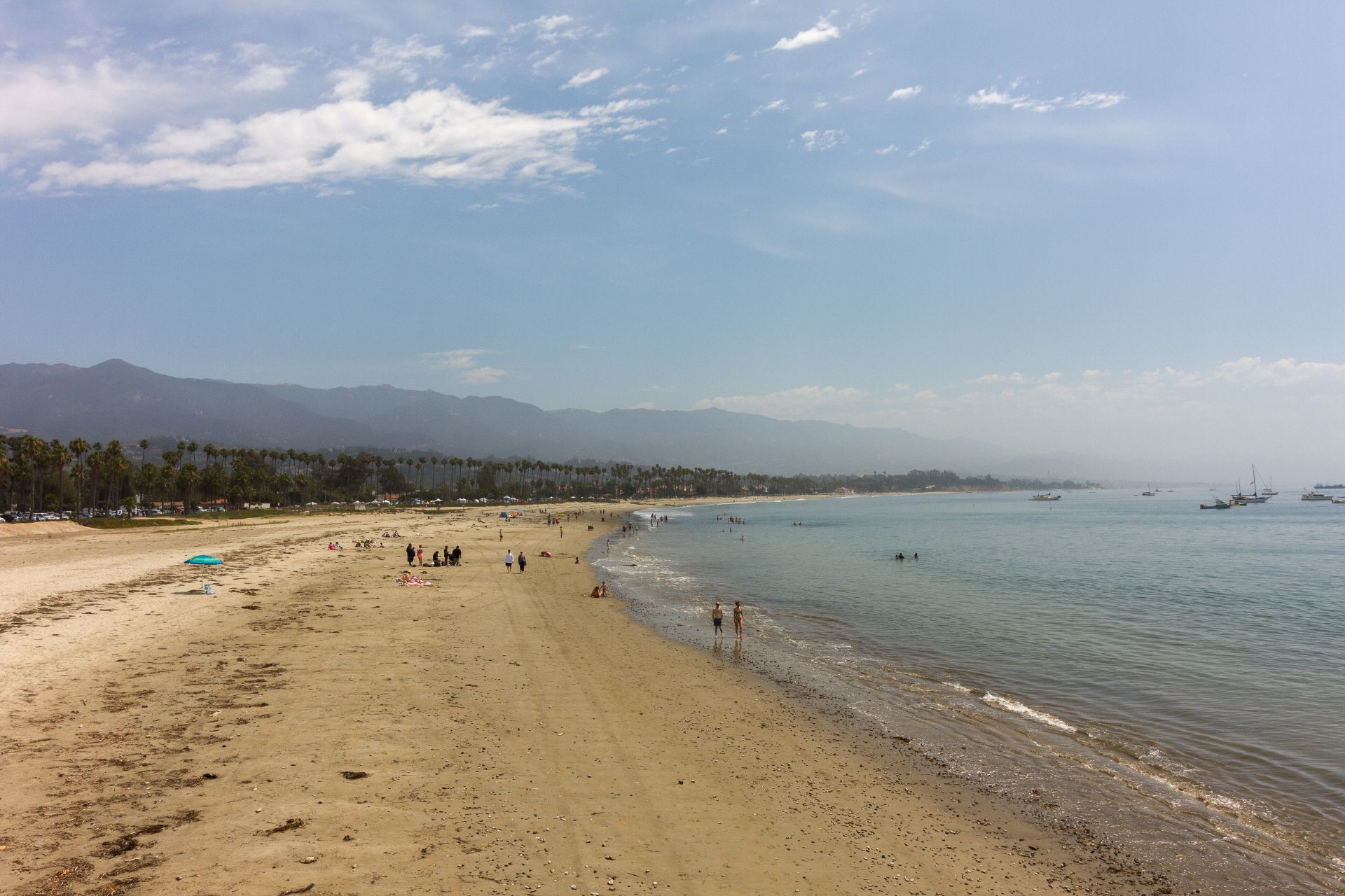 Fast mit Tränen in den Augen habe ich heute meinen Traumplatz auf dem El Capitan verlassen. Auf dem Hiker/Biker-Bereich war ich immer noch der Einzigste, aber auf den benachbarten Gruppenplätzen haben sich über's Wochenende Gruppen von Familien eingefunden (alles asiatisch-abstammige), so das es doch etwas belebter wurde. Aber ich wollte langsam wieder gen Süden - der 19. July nähert sich, an dem Martina, Nina und Alex in L.A. ankommen werden. Die Weiterfahrt verlief dann recht locker. In Santa Barbara stockte ich nochmal mal meine Vorräte auf und machte eine längere Pause. Da es Sonntag war, sah ich diesmal ein ganz anderes Bild von Santa Barbara. Überall war was los. Viel Verkehr. Und an der Strandpromenade ein netter Künstlermarkt.