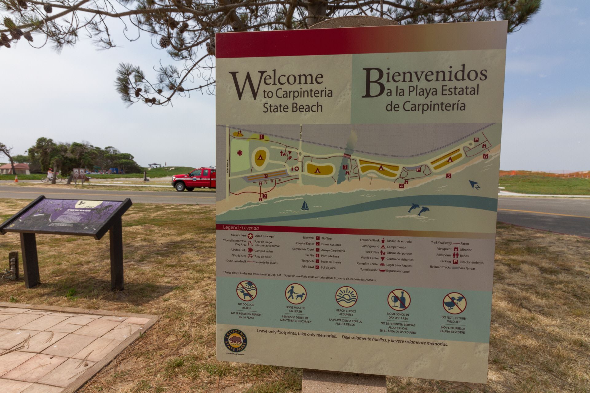 Bis Carpenteria war's dann nicht mehr weit. Auf dem Carpenteria State Beach habe ich mein Zelt dann auf dem Hiker/Biker-Bereich aufgestellt. Aber kleiner Unterschied zum El Capitain, dieser State Beach (vor allem am Sonntag) war knacke-voll, massenweise Tagesbesucher des riesigen Strandes. Aber auch der Hiker/Bereich diesmal nicht leer. Ein etwas penner-mäßig anmutendes Paar in einer Ecke, ein Surfer-Paar in der anderen. Sehr nett sind zwei junge Franco-Canadier, die als Hiker unterwegs sind. Zwei Studenten aus Quebec, etwas unerfahren und chaotisch, aber sehr offen, so dass wir viel (auch über die Eigenarten der Amis) diskutieren könnten.