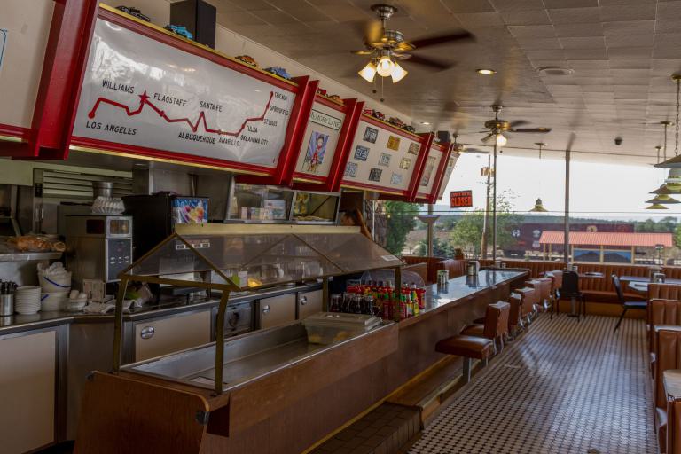 In Williams angekommen ging's erstmal in den Route 66 Diner auf einen Ankommens-Milchshake. Beim Reingehen fragte mich eine ältere Dame namens Susan, die ebenfalls den Diner aufsuchte, ob wir einen Tisch 'sharen' sollen, da sonst keine weiteren Gäste da sind. Nach einer netten Unterhaltung über europäische Abstammungen (ihre Vorfahren kamen aus Dänemark) und unseren Familien lud Susan mich zum Shake ein. Nett. Williams selbst ist sehr touristisch, hat viele Motels und ganz gute Bars, z.B. das Historic Barrel Bottle, in dem zu lokalen Bieren vom Tap die Black Keys und die Arctic Monkeys, einer meiner Lieblingsgruppen, gespielt wurden. Also Williams lohnt sich für einen Stopp. Mein heutiges Motel war wie meist üblich wieder in fester indischer Hand.